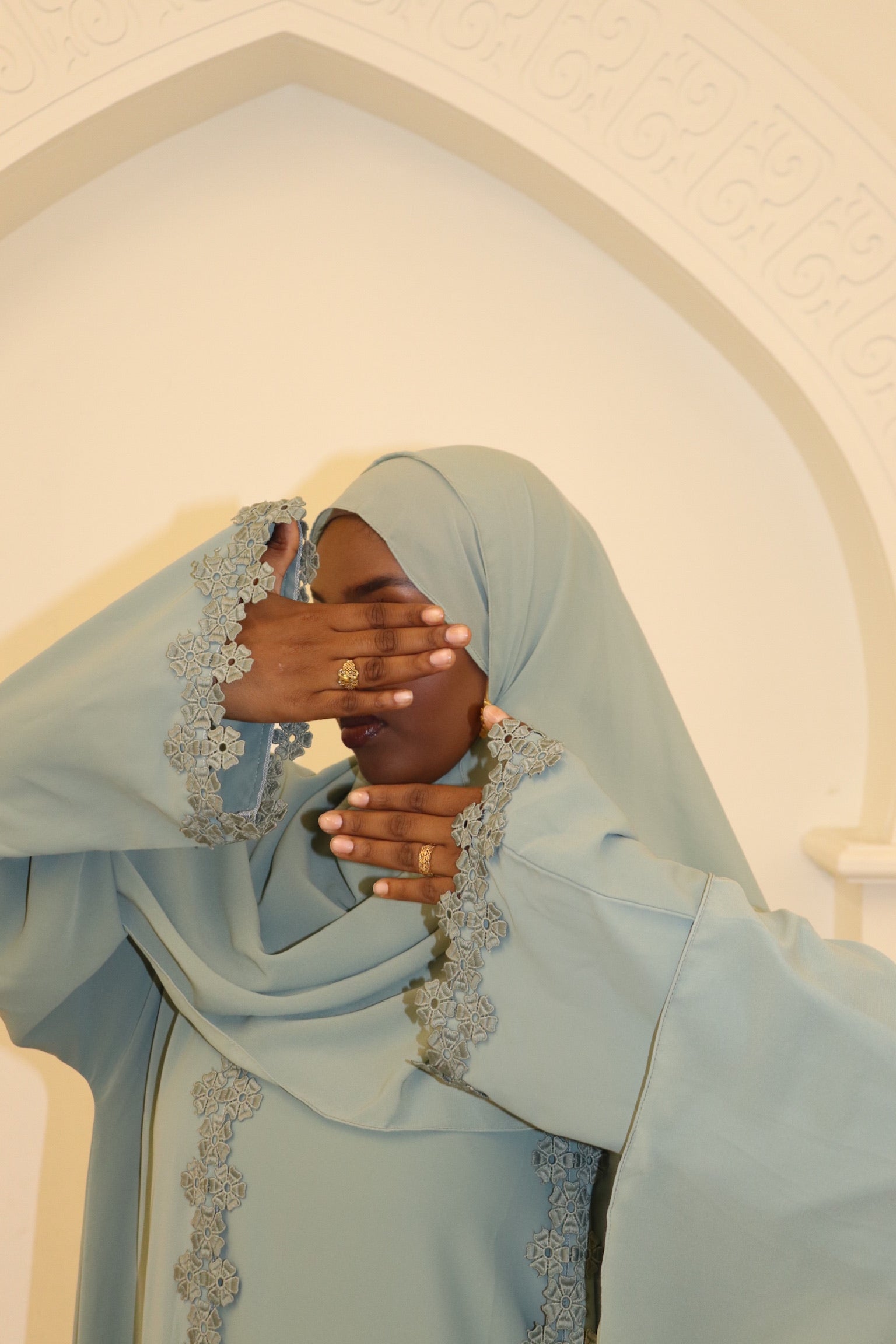 Elevate your wardrobe with the Mint Serenity three-piece abaya, crafted in a soothing mint green shade. This ensemble features delicate lace detailing that adds a refined touch of elegance and texture. Designed for both comfort and style, the set offers versatile layering options perfect for formal occasions or everyday wear. Experience modesty without compromising grace, with breathable fabric and meticulous craftsmanship ensuring lasting quality and a flattering fit.